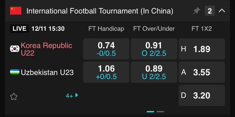 U22 Hàn Quốc under 2.5 @ 86